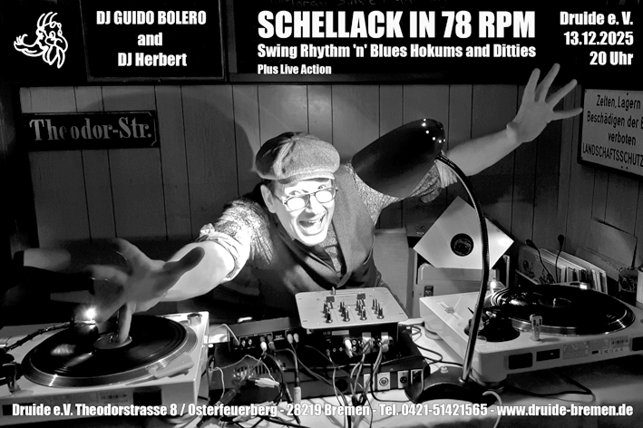 13.12.2025 um 20 Uhr Shellackabend mit DJ Guido Bolero & Gästen – Swing & Rhythm’n’Blues on 78 rpm und Livemusik